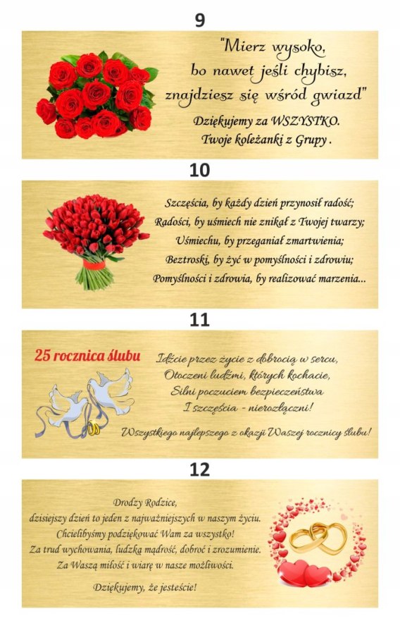 4.Numer tabliczki oraz kolor tabliczki złoty czy srebrny.