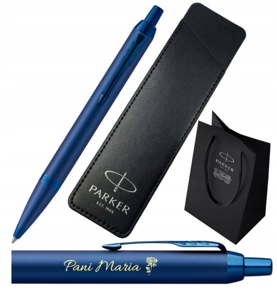 DŁUGOPIS PARKER IM NIEBIESKI Z GRAWEREM ETUI PARKER I TOREBKA PREZENTOWĄ