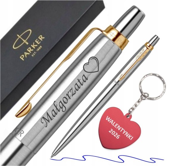Parker Jotter GT złocony z grawerem, uzupełniony o brelok w kształcie czerwonego serca, to idealny upominek, który łączy symbol miłości z ponadczasową klasą marki Parker.