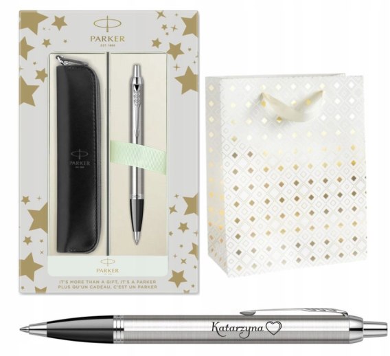 DŁUGOPIS PARKER IM STAL Z GRAWEREM + TOREBKA I ETUI ORYGINALNE PARKER