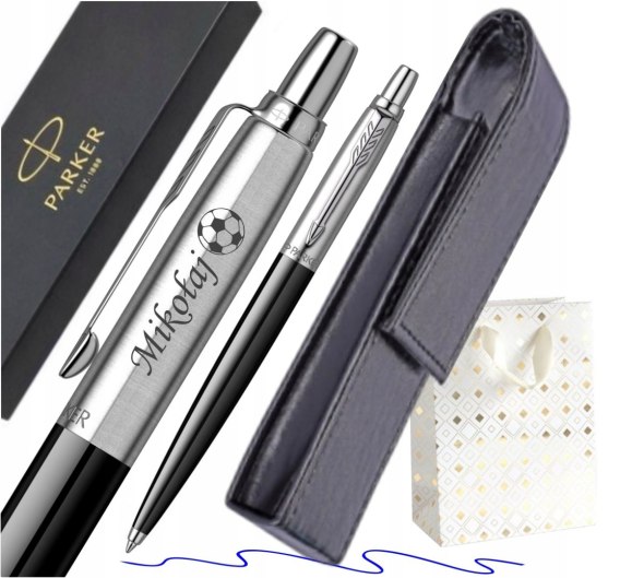 Zestaw uzupełnia czarne etui  zamykane na magnes, które łączy funkcjonalność i elegancję. Całość zapakowana jest w oryginalne pudełko prezentowe Parker i ozdobioną torebką prezentową, co sprawia, że jest to gotowy zestaw upominkowy.