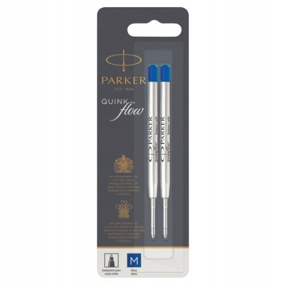 Wkłady Parker QuinkFlow Medium niebieskie (2 szt.) to oryginalne akcesorium kompatybilne z każdym długopisem Parker.